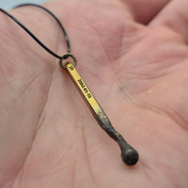 The Matchstick Pendant is a heartfelt, handcrafted necklace shaped like a scorched matchstick and engraved with the name of your loved one. It’s more than a piece of jewelry — it’s a powerful reminder of a life lived with impact, love, and light.